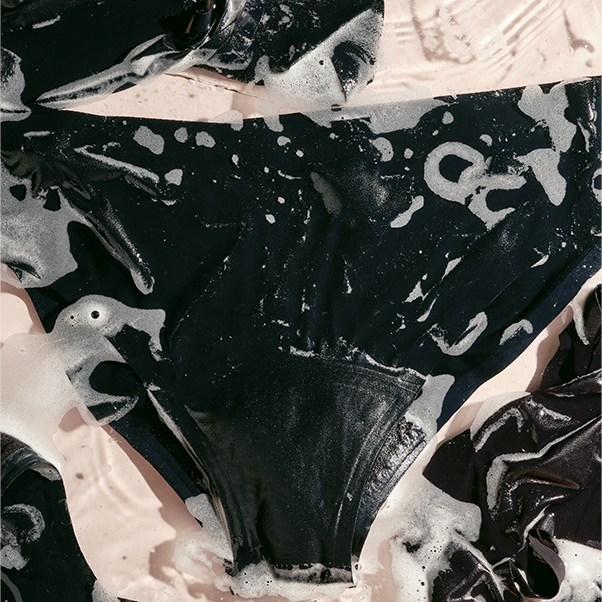 Gently massage and release a few times before leaving them to soak for 10-15 minutes. Reusable period underwear may need some time to saturate properly—thanks to the ultra-absorbent internal layering.