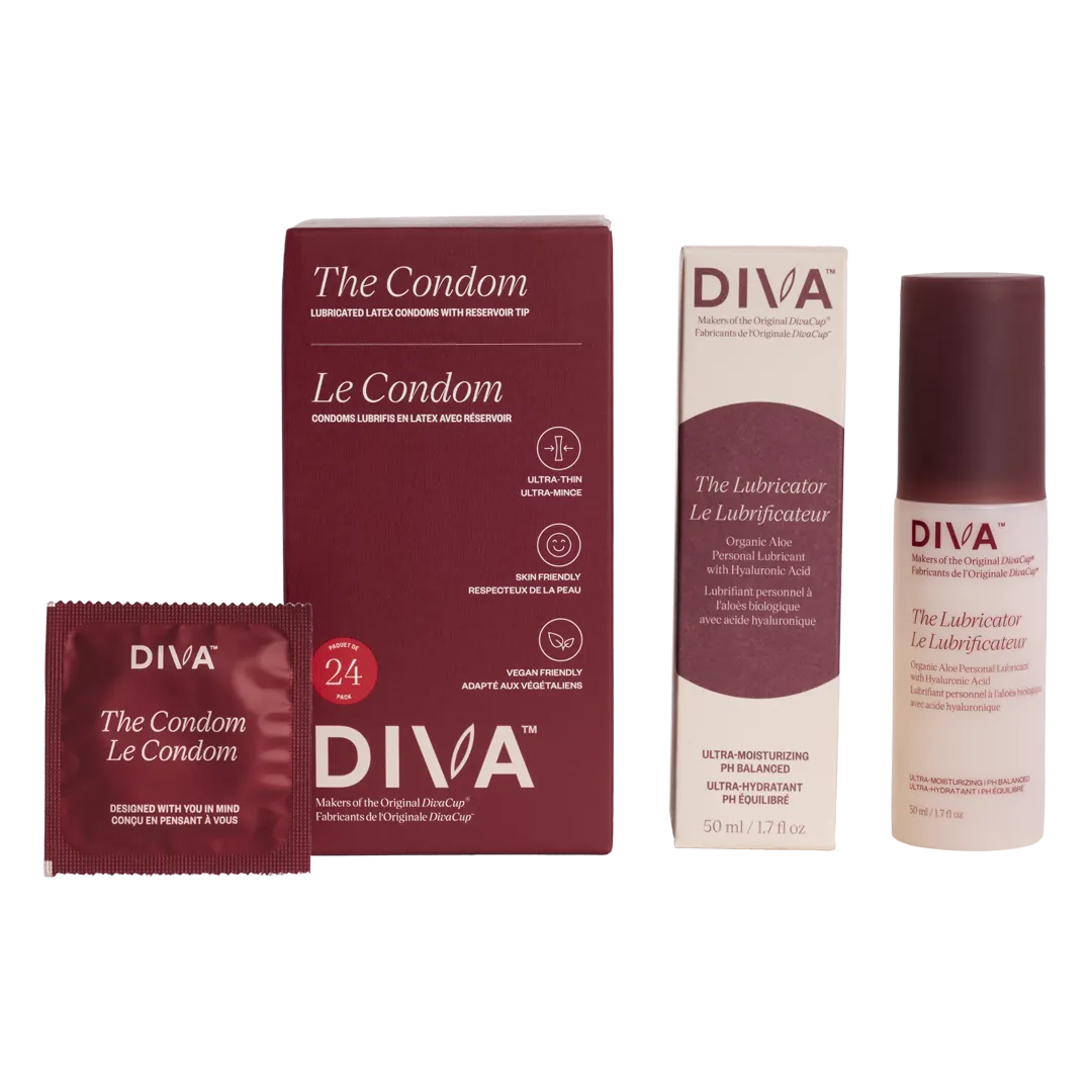 The perfect pair. DIVA’s Condom and aloe-based Lubricator are the perfect match for safe sex that feels simple, confident, and reliable. This skin-friendly duo removes the guesswork so you can stay present in the moments that matter.